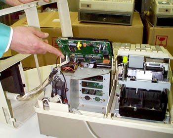 プリンターカバーを外す。プリンターカバーの後ろの凹みに指を入れ上に持ち上げる。